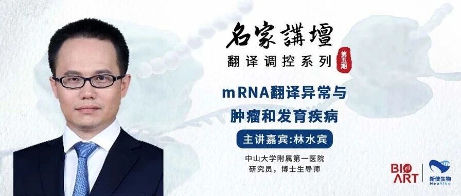 BioArt名家讲坛翻译调控系列第5期 | mRNA翻译异常与肿瘤和发育疾病 主讲嘉宾:林水宾 中山大学附属第一医院研究员