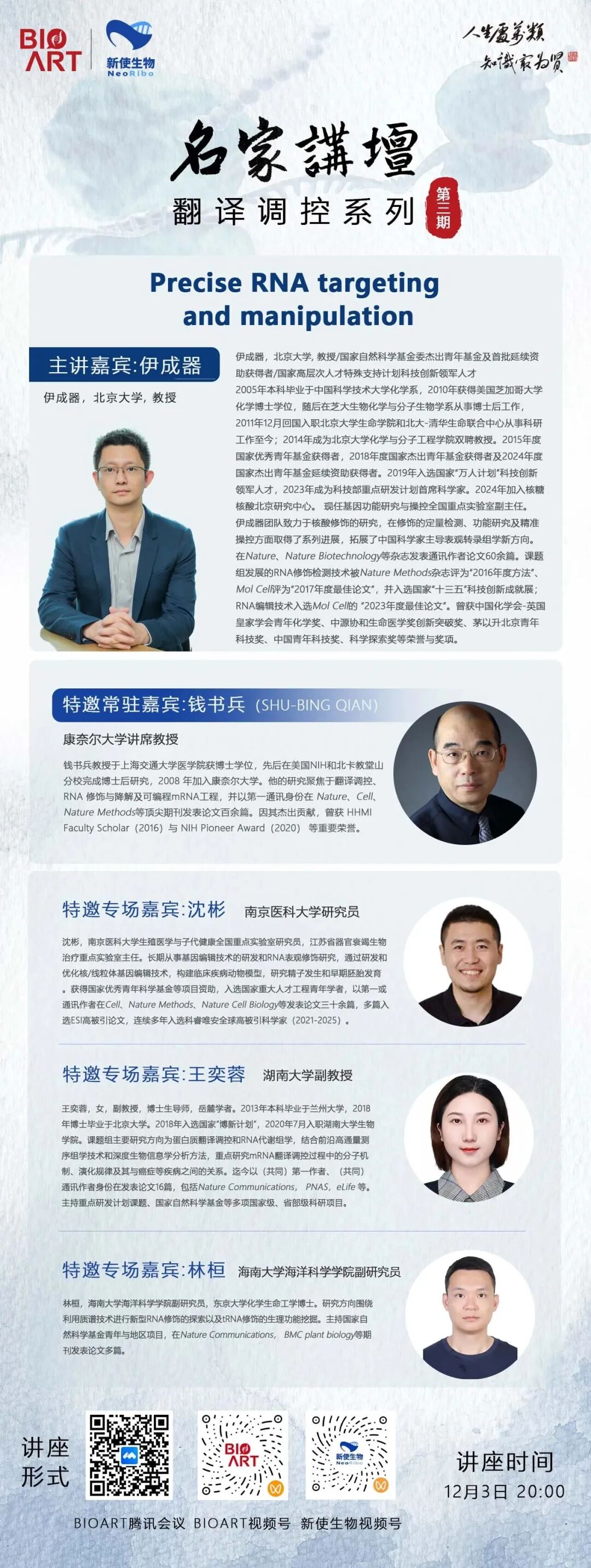 BioArt携手新使生物推出【名家讲坛·翻译调控系列】,面向全球生命科学研究者,聚焦翻译调控的核心科学问题与前沿应用。