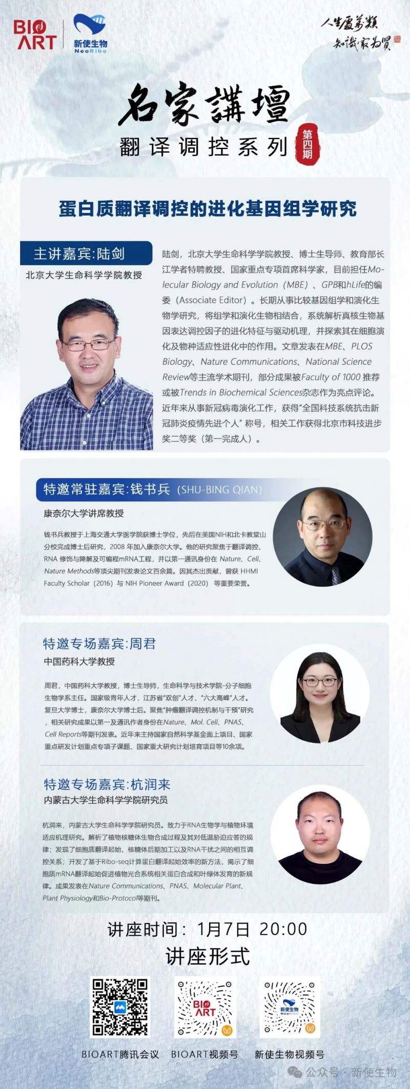 名家讲坛第一期(今晚八点丨BioArt名家讲坛·翻译调控系列第1讲,抓紧预约)